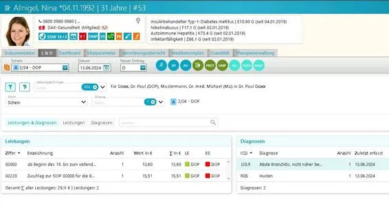 Erweiterte Scheinansicht: Leistungen und Diagnosen