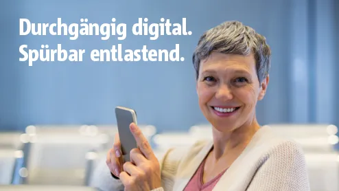 Auch die Organisation der Folgetermine läuft unkompliziert: Frau Weber kann diese selbstständig über die gesund.de App oder die Praxiswebsite buchen. Rückfragen zu Übungen oder Empfehlungen beantwortet Jana Meier per Messenger aus der Praxissoftware psyx. Dieser ist direkt mit der gesund.de App verbunden. Der Griff zum Telefon und unnötige Wege zur Praxis entfallen, während die Kommunikation zugleich niedrigschwellig und sicher ist.
