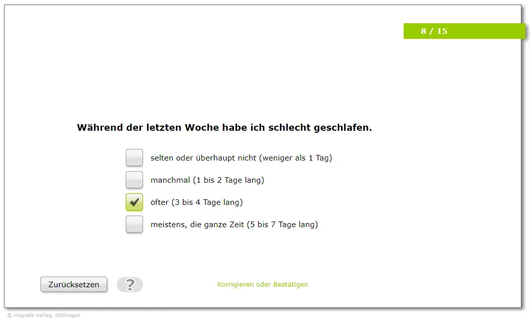Für Johanna entscheidet sich Herr Weber dieses Mal für das Verfahren BOSS – Burnout-Screening-Skalen II.
