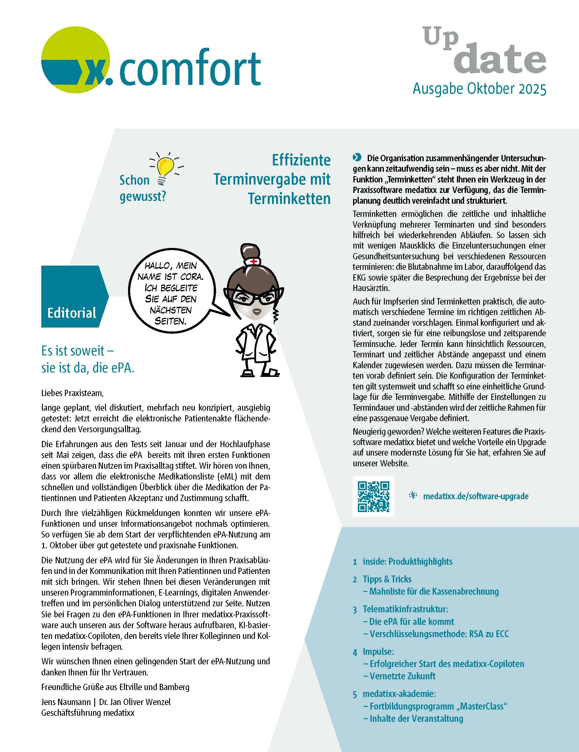 In unserem x.press-Update erfahren Sie als Anwenderinnen und Anwender alle Neuigkeiten rund um Ihre Praxissoftware x.comfort. Zusätzlich informieren wir Sie zu weiteren wichtigen Themen und aktuellen Angeboten. Lesen Sie jetzt in die aktuelle Ausgabe rein!